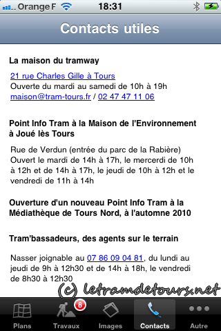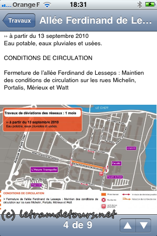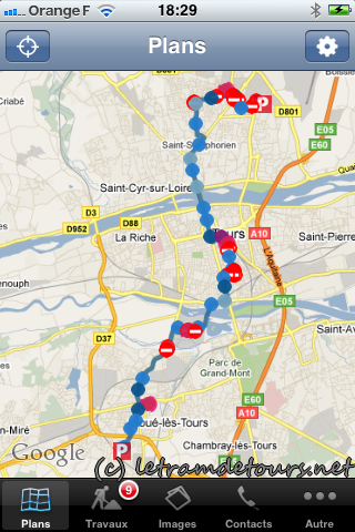 Vous (re)trouverez l’essentiel du site internet officiel tram-tours.fr dans votre mobile, avec une carte interactive détaillant les travaux et le tracé, les travaux en cours, des images de synthèse (rien d’exceptionnel …) et des contacts utiles.
