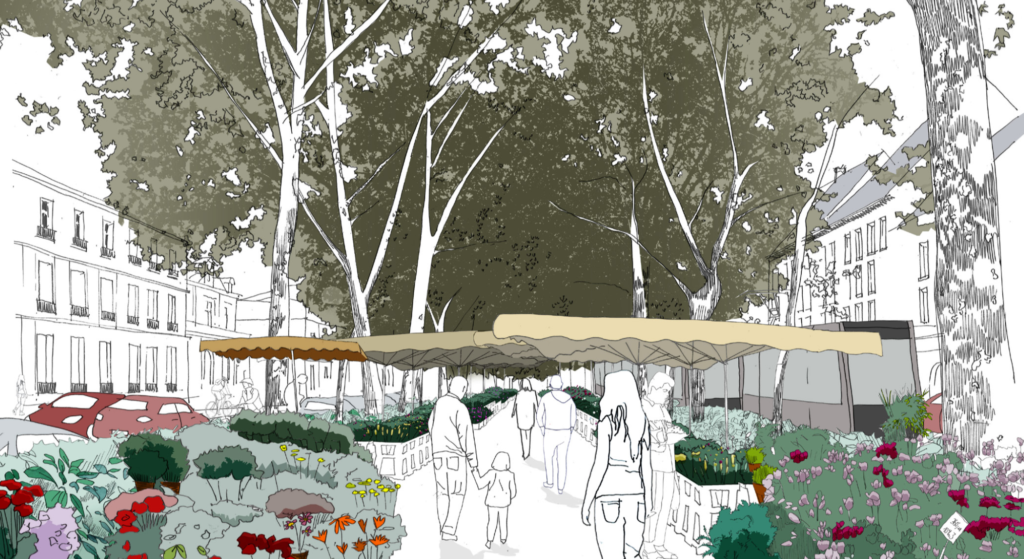 Autre point de crispation, l’insertion du tramway boulevard Béranger – et son impact sur les arbres – est l’objet de toutes les attentions. Comme prévu, la rangée extérieure sera abattue, mais le mail devra être conservé. Les esquisses et les images de synthèse n’ont pas de quoi rassurer les défenseurs du mail arboré. On y voit des spécimens situés extrêmement près de la plateforme. D’autres se retrouvent même être incorporés au quai de la future station « Cité de la Gastronomie ». La présence de la ligne aérienne de contact en secteur sauvegardé interpelle également. Quant au marché aux fleurs, il semble inspirer les artistes qui l’ont représenté sous différents angles.