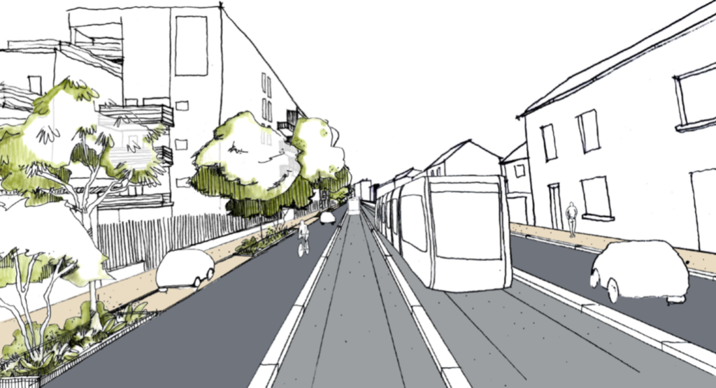 Avenue de Bordeaux, l’actuel site propre de la ligne de bus à haut niveau de service 2 Tempo laissera sa place à une plateforme végétalisée.