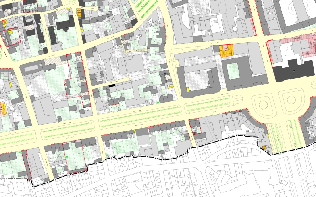 Il n’est pas rare que la compréhension de ces textes soit soumise à diverses interprétations. Si la nécessité de « préserver, renforcer ou compléter » ces rangées est clairement mentionnée, il est plus délicat de savoir si seul le mail central est concerné ou s’il s’agit de l’ensemble des arbres. En effet, le règlement graphique du PSMV – qui se présente sous la forme d’une carte – ne fait état que des platanes situés en interne. Malgré cela, la préfète pense « qu’à son sens » les plantations extérieures doivent être aussi préservées, car « elles participent à l’alignement ».