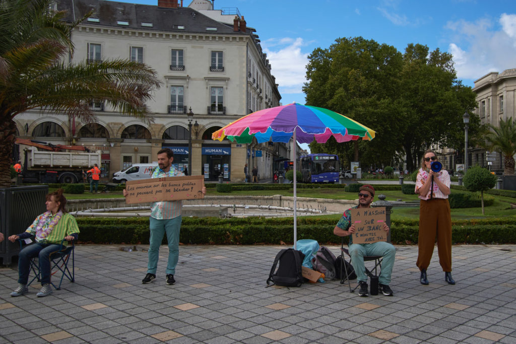 Après une première série de micros-trottoirs réalisés sur place auprès des passants les 9, 10 et 11 septembre derniers, la rencontre avec les citoyens s’est poursuivie ce lundi autour de temps forts à 12h, 13h15, 15h et 16h15. Cette fois-ci, la méthode se veut plus originale. 4 comédiens se sont donnés en spectacle de manière à attirer l’attention des piétons et ainsi recueillir leur avis. Un moyen inédit d’aller à la rencontre d’un public qui ne se rendrait pas aux classiques réunions de concertation, selon Annaelle Schaller, adjointe municipale déléguée à la démocratie permanente.