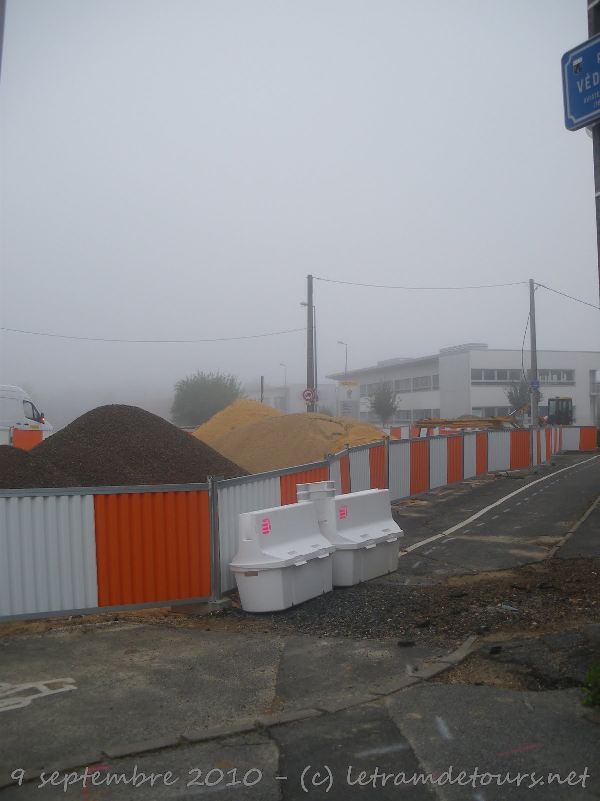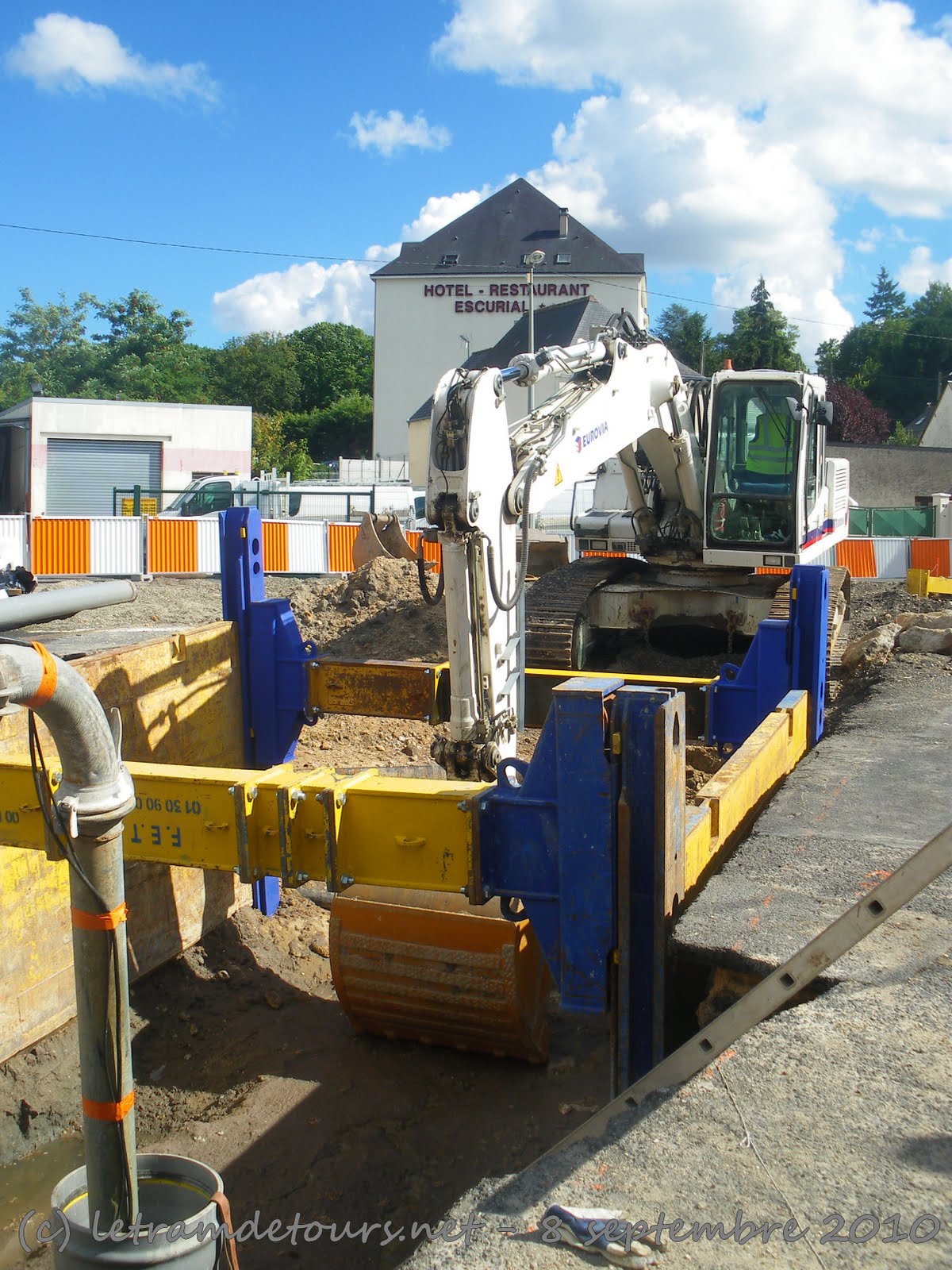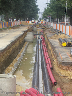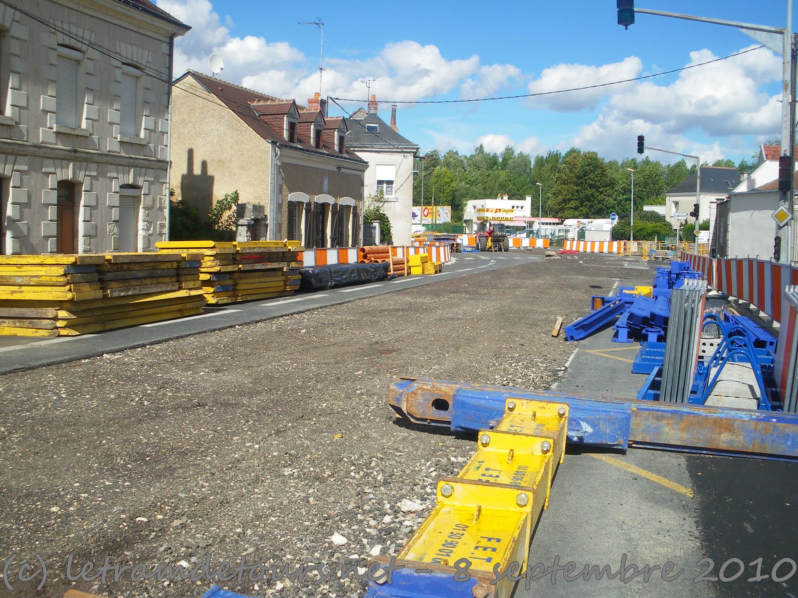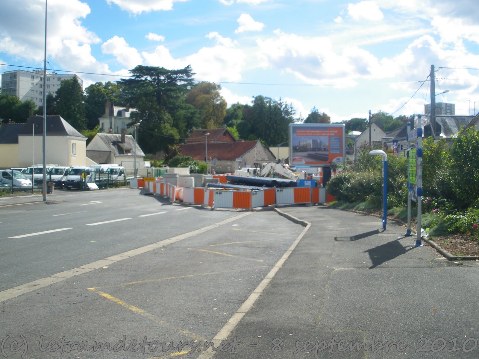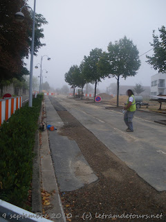 Depuis le 9 août dernier les travaux de déviation des réseaux se poursuivent rue du Colombier à Tours Nord (photo du 9 septembre 2010) :