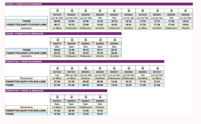 Grille horaire de la gare de Fondettes/Saint-Cyr-sur-Loire